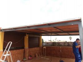 Ahora... La idea era poner un toldo corredero, pero nos hemos animado a poner un techado de madera con todo lo que contiene, ...