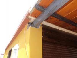 Tengo una terraza de aproximadamente unos 38 m2, hemos plantado unan estructura de acero galva, cogido ha forjado del suelo de la terraza (posteriormente se ha puesto su tela asfáltica y se ha cerrado con solería), y en el otro extremo dentro del muro de la habitación, existe estructura metálica, entonces va soldado, y rematado en obra. La estructura es muy segura.