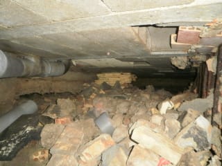 El caso, que el edificio, tiene mas de 40 años y recientemente y según la comunidad, se ha pasado la ITE, la cual, solo ha determinado, que había que poner extintores, luces de emergencia y arreglar la fachada. El caso que no han dicho nada de los cimientos del bloque, los cuales están llenos de lodo, escombros, humedad, por no decir que las arquetas están en un estado de deterioro lamentable. También comentarle, que recientemente han cambiado la arqueta de aguas negras y pluviales que esta justo abajo de mi baño, y para mi han hecho una chapuza, le adjunto unas imágenes: