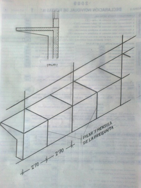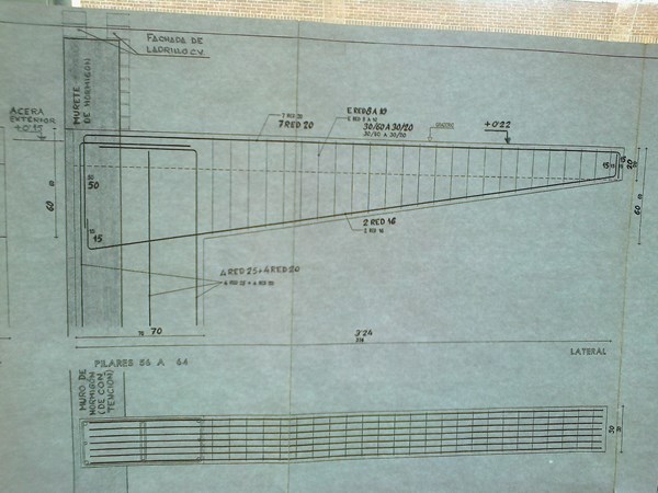 Gracias por su contestación. No es su culpa que no entienda algunos términos. Soy yo, por mi poca formación. Me parece una buena idea plantear un problema concreto, usted lo calcula, yo veo los números hechos, y así es posible que llegue a comprender mejor el tema. Dispongo de un plano, correspondiente a una obra en la que trabajé, en el que tengo la ménsula y pilar en cuestión ya calculados, por supuesto, pero en mi afán de aprender quiero saber cómo se ha llegado a ese resultado. Es un polideportivo, rectangular, con un muro de contención de hormigón en su perímetro, de 30 cm, desde la cota -2,73 hasta la + 0.22, con zapata corrida de 2,20, centrada; el canto lo desconozco. En uno de los lados largos es donde están las ménsulas que soportan la losa. Los pilares de los cuales salen las ménsulas están embutidos en el muro, de tal manera que de los 70 cm, 45 sobresalen hacia la cancha y 25 están dentro (el muro tiene 30, pero el pilar entra en él 25). Las zapatas de los pilares están embutidas en la del muro, son de 1,80x1,80, centradas con la del muro; el canto lo desconozco.