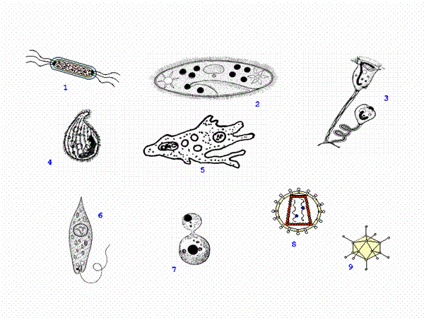Me pòdrias ayudar a descifrar esto, en la figura 1 se esquematizan diferentes microorganismos. Es necesario destacar que no todos están a la misma escala. Así, 8 y 9 son de un tamaño 50 veces menor que 1, y 1 es unas 50 veces menor que el resto (2, 3, 4, 5, 6 y 7).