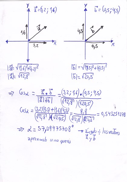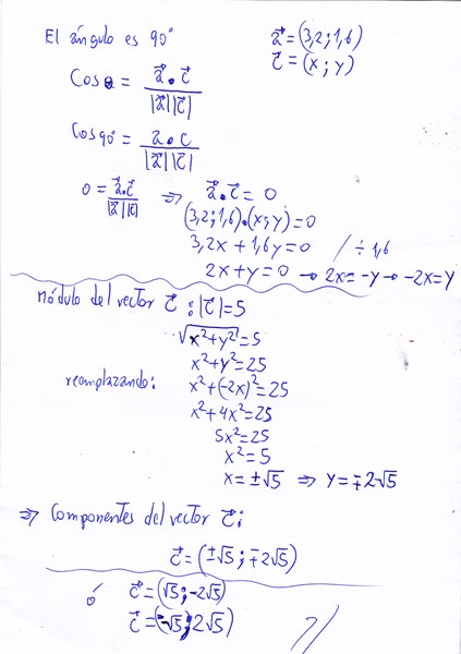 Dos vectores a y b tienen componentes, en unidades arbitrarias, ax, ojo(esta por va pequeñita al lado de a ) osea ax = 3.2, ay= 1,6; bx=0.50, by=4.5. A) halle el angulo entre a y b . B)halle las componentes de un vector c que sea perpendicular a a, este en el plano xy, tenga una magnitud de 5.0 unidades...