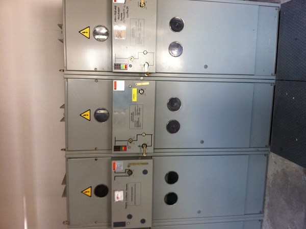 Supongamos que tengo 5 transformadores elevadores de tensión independientes. A la salida de cada trasformador me sale una corriente de 30 A y 20 kV y quiero unir las tres fases de cada uno de los 5 transformadores con el fin de tener una sola linea trifásica, con lo que la corriente saliente sería de 30x5=150 A y una tensión de 20 kV. ¿Como se realiza esta conexión o "empalme" y donde tiene lugar? ¿Se requiere de algún habitáculo de características especiales?