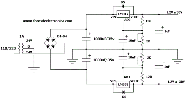 Mi pregunta es, ¿puedo usar este mismo circuito para construir mi fuente? Es decir cambiarle unicamente el transformador por uno de 4Amps +-¿30v?