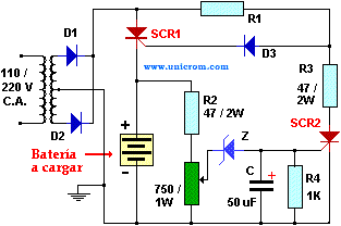 Tengo dos baterías de 6 V, 4.2A cada una, están conectadas en serie, osea 12v, tengo una fuente que entrega 14.66v a mas o menos 5 o 6 A, ya sale a corriente continua, quisiera hacer un cargador de corte automático lo mas sencillo posible y si no se dificulta ponerle un led verde cuando cargue y uno rojo cuando corte o simplemente un solo led que indique cuando cargue o cuando corte, e visto el siguiente diagrama pero quiero saber si se puede hacer mas sencillo.