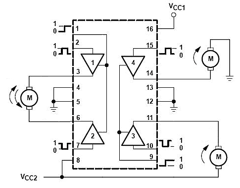 SN754410 Quad H-Bridge es capaz de manejar motores de alto voltaje (4.5V a 36V