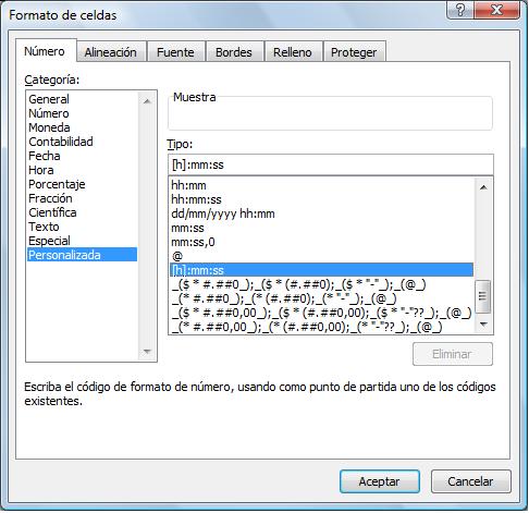 Pero antes, a las tres celdas hay que darles un formato personalizado conocido como [h]:mm:ss