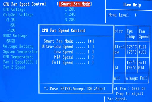 Modifica la opción de fan a low y da en esc y f10 para guardar cambios.