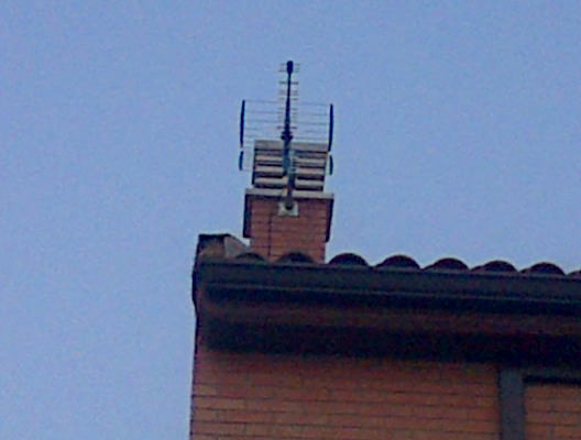 Tengo la antena de televisión montada tal y como se muestra en la imagen, estaría bien instalada?? O tendría que estar por encima de la chimenea. La parrilla esta en la misma altura que la parte blanca de la chimenea.