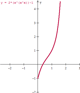 $$2·\left(-\frac 12\right)^{\frac{1}{\sqrt{-\frac 12}}}$$ Y la raíz cuadrada de (-1/2) no existe. Por eso las funciones del tipo x^x solo están definidas para x positivo y las funciones a^x solo existen si a es positivo