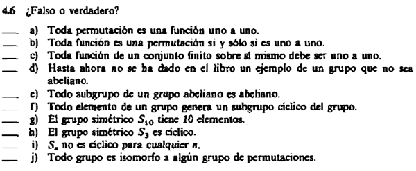 a) Verdadero. Una permutación es una aplicación biyectiva y por lo tanto es 1 a 1