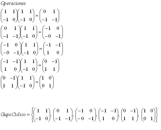 Determine explícitamente los elementos del grupo cíclico generado por la matriz