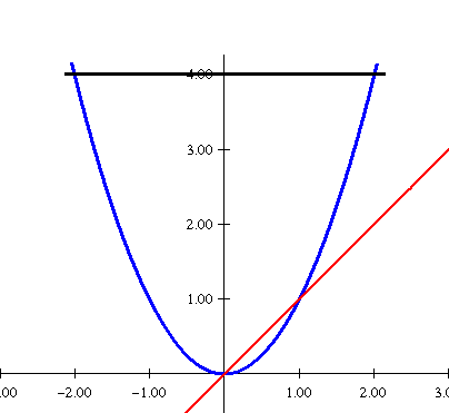 La recta roja es la y= x. Ya habíamos dicho en el ejercicio anterior que la función