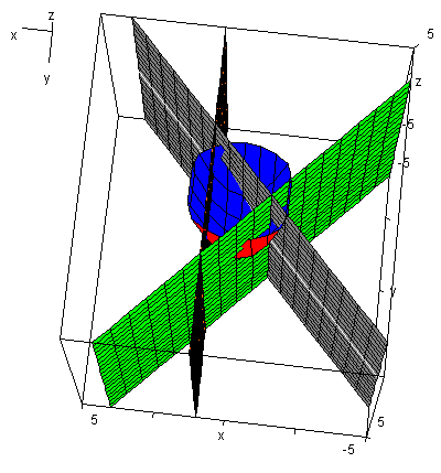 Esta es la gráfica tridimensional, fíjate en los tres planos verticales que serán el dominio de integración y dentro estará el techo de cilindro que debemos integrar.