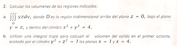 Bueno el problema a queda así entonces, calcular el volumen de la región del espacio delimitida por el plano z=0 como base, el plano z= y como altura y el cilindro x^2+y^2=4 como pared lateral. Creo que es bastante sencilllo de intuir.