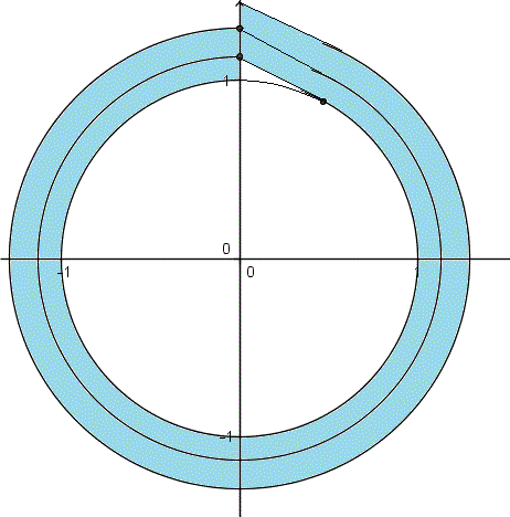 El cáculo de esa distancia recta es un problema bastante complicado. Entonces lo que se puede hacer es considerar que el rollo está formado por circulos concentricos. Si ekl diametro es grande y el grosor pequeño tan apenas se comete error haciendo esa sustitución. Y ademas va a resultar una fórmula mucho más sencilla.