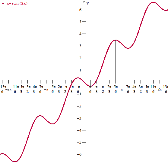 en (5pi/6, 7pi/6) tomamos x=pi entonces f '(x) = 1-2 =-1 luego f decreciente