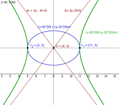 Luego el centro de la hipérbola es (8,3)