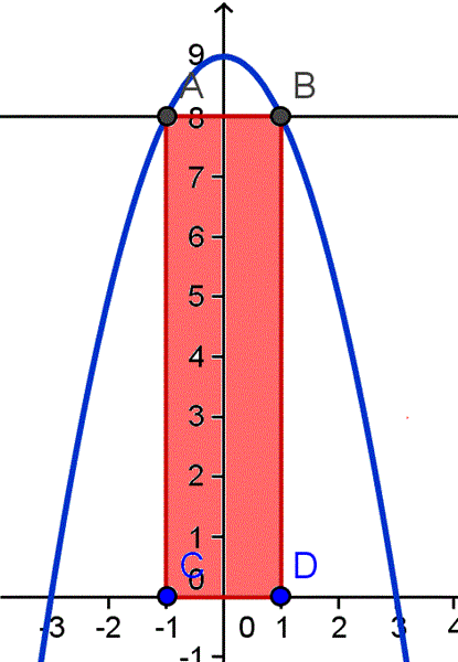 Y una tenemos la ecuación de la parábola tenemos que ver cuál es el ancho que tiene a 8 pies de altura. Sustituimos la y de la ecuación por esa altura