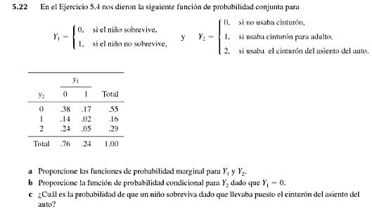 a) Tal como está dispuesta la tabla, las probabilidades marginales para Y1 son las sumas de las columnas y las de Y2 la suma de las filas