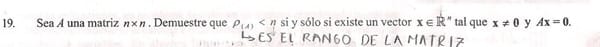 Demostración sobre el rango de una matriz