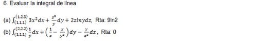 $$\begin{align}&\int_P^QX(x,y,z)dx+Y(x,y,z)dy+Z(x,y,z)dz=\\ &\\ &\int_a^b[X(f(t),g(t),h(t))f´(t)+Y(f(t),g(t),h(t))g´(t)+Z(f(t),g(t),h(t))h´(t)]dt\end{align}$$Y ahora simplemente debemos sustituir los datos del problema