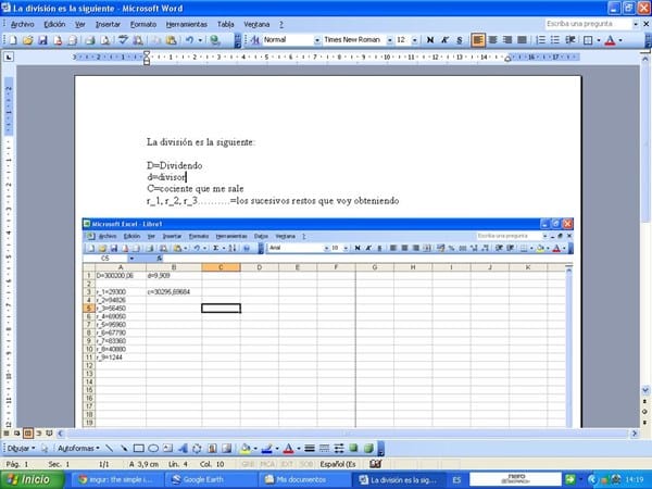 Las operaciones las hice más apropiadas para trabajar a mano que para Excel. Excel no tendrá problemas en hacer las divisiones de los restos de un tirón sin tener que tener en cuenta cuantas cifras había detrás de las que tomamos o cuántas se tomaron después del punto decimal.