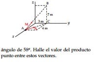 No nos dicen para nada lo que miden M y N, luego no se puede calcular el producto escalar. Lo único que se puede hacer es deducir el ángulo que forman