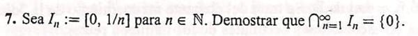 pero la intersección de los n primeros intervalos sería [0,1/n] y a no pertenecería a ese intervalo, luego no pertenecería a la intersección de todos. Absurdo porque se suponía que pertececiá.
