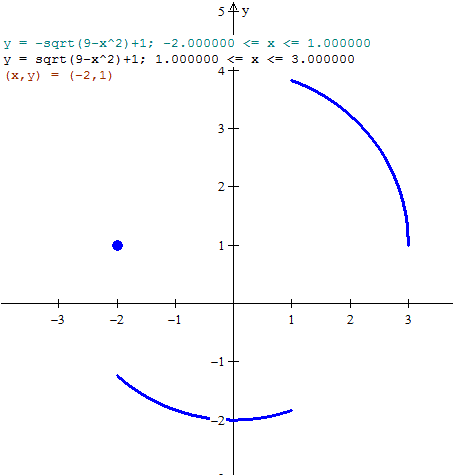 http://www.wolframalpha.com/input/?i=f%28x%29%3D+%5B+%5Bsqrt%289-x%5E2%29%5D*sgn%5B+sqrt%28x%2B2%29+%2F+%28x+-1%29+%5D+%5D%2B+floor+%5B+%282x%2B5%29+%2F+%28x%2B3%29+%5D