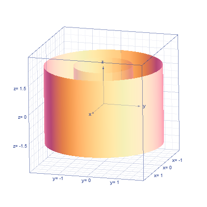 Esto quiere decir la circunferencia de corte está entre los dos cilindros. Habrá una parte donde el paraboloide superior sea uno y otra donde lo sea el otro.