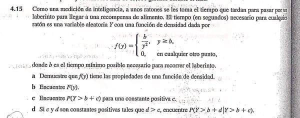 d) Si c y d positivas con d>c calcular P(Y>b+d | Y>b+c)