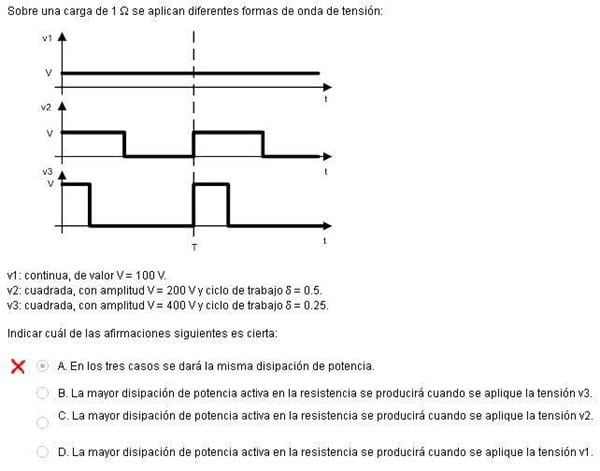 Yo creo que en los tres casos daría la misma disipación e potencia, pero algunos compañeros de clase me han dicho que la respuesta correcta debería ser la (B), aunque no se el porque, o si a lo mejor se han equivocado.