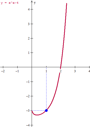 Graficar la función y encontrar el límite de f(x) = x^x – 4, si x tiende a 1