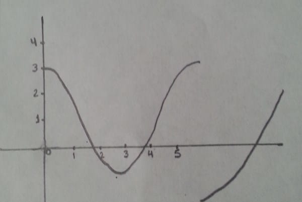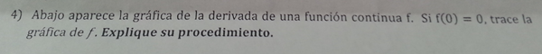Yo lo resolvería partiendo de cero, dibujaría un poquito de la recta y=3x ya que la derivada en x=0 es 3. Donde terminara dibujaría otro poquito de la recta con pendiente lo que valiera la derivada del punto donde estoy. Y asi continuaría dibujando en trocitos donde termino el anterior que tienen la pendiente de lo que vale la derivada respectiva. Cuanto más pequeños sean los pasos mayor precisión se logra. No obstante es un proceso pesado y el resultado no suele ser muy exacto. Y es muy difícil recrearlo aquí gráficamente. Si has dado ecuaciones diferenciales seguro que habrás visto algún campo de direcciones que es parecido a lo que hacemos.