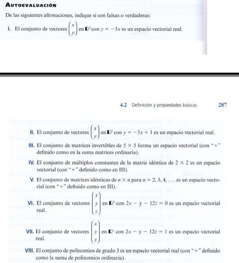 I. Verdadero. Es el subespacio vectorial generado por el vector (1, -3)