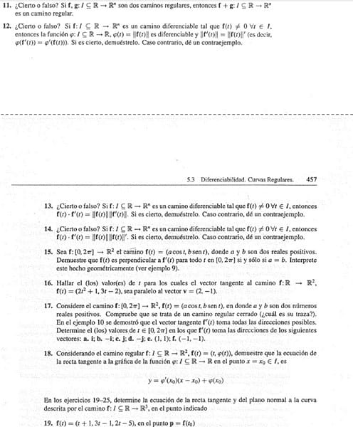 16). El vector tangente al camino es la derivada de la función (o camino que parece que están llamando a las funciones de R en R^n)