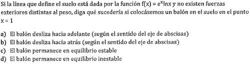 Tenemos la gráfica de la función f(x), por lo que si colocamos el balón en x=1, el balón delizaría hacia atrás. Respuesta b)