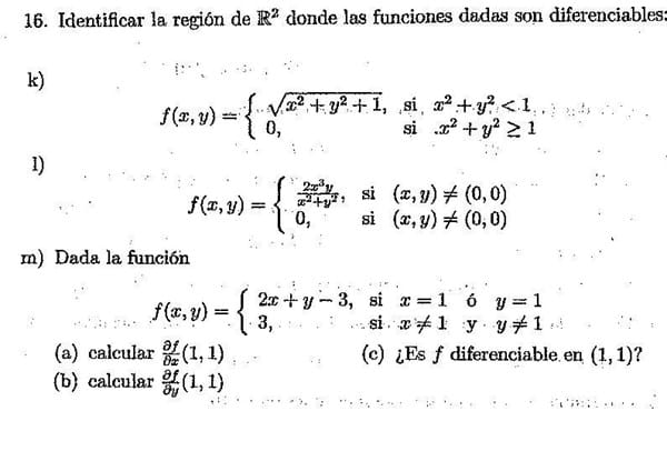 La función f es claramente diferenciable tanto si ×^2+y^2<1