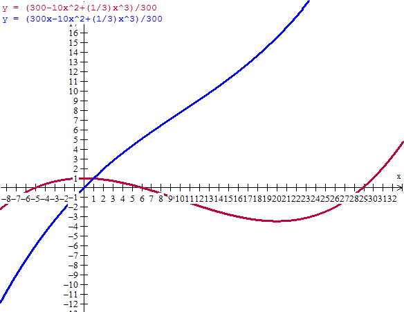 C(x) = 300 – 10 x^2 + (1/3) x^3