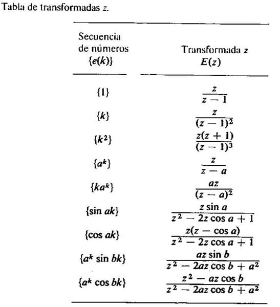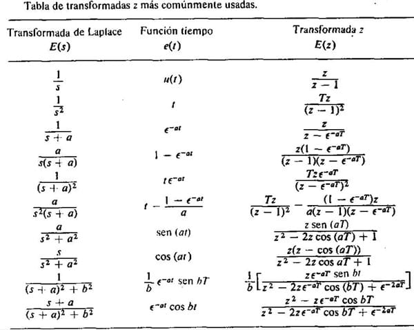 Ahora en teoría debería de aplicar la (TRANSFORMADA Z) que es algo muy parecido a la (TRANSFORMADA DE LAPLACE), mediante la siguientes tablas: