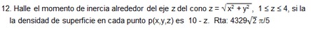 Y para obtener el momento de inercia del ciliindro integramos estos momentos entre z=1 y 4
