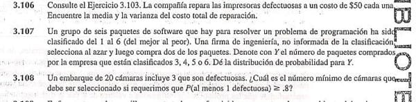 3.107) Paquete puntuados 1 a 6 se eligen 2. Variable Y= nº paquetes con 3,4,5,6 de nota