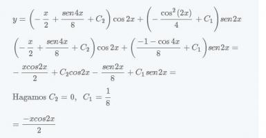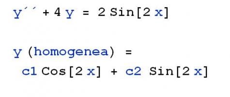 Ahora la teoría dice que si sumamos a esta solución de la homogénea una solución particular de la no homogénea tendremos la solución general de la no homogénea.