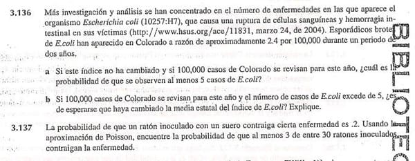 a) El número de casos esperado es 2,4 en esos 100000 que se van a revisar. El parámetro es siempre el número de casos que se esperan en el tiempo que dura el proceso de Poisson. Luego es 2,4