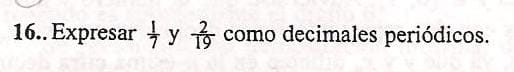 Se tiene que hacer la división entera hasta que se obtiene un resto igual que otro anterior y entonces se repiten las cifras. Puede servir la calculadora cuando el periodo es corto, pero a veces no.