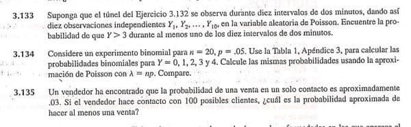 3.133) No me suena haber hecho el ejercicio 3.122. Al final pregunta si es razonable el modelo de Poisson para el problema. Sí lo es, es igual que todos los problemas de Poisson.