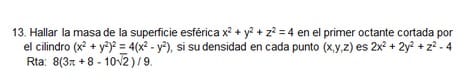 El problema dice hallar la masa de la superficie esférica, se han debido equivocar, una superficie no tiene masa, tiene masa el sólido limitado por unas superficies.