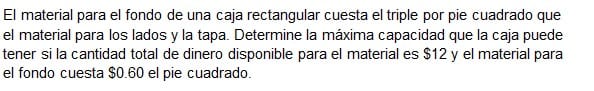 La caja tendrá unas dimensiones x, y, z dadas en pies. Su volumen será