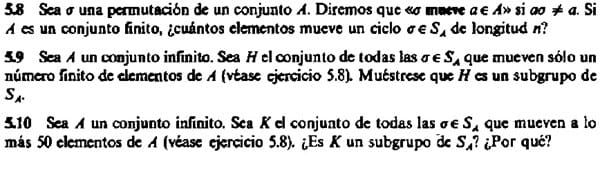 5.10) No, no es un subgrupo. Sencillamente porque no tiene elemento neutro. El elemento neutro mueve cero elementos luego no pertenece a K.